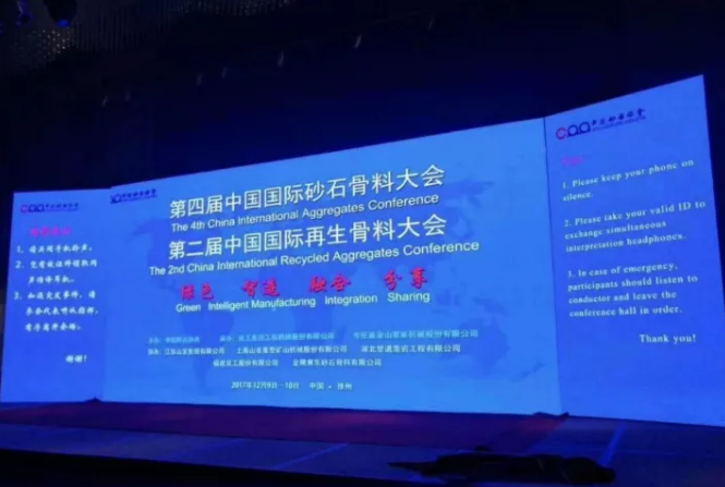 2017年12月9日,以“綠色 智造 融合 分享 綠水青山新畫(huà)卷 一帶一路新樂(lè )章”為主題的第四屆中國國際砂石骨料大會(huì )在徐州召開(kāi)。共有來(lái)自英國、南非、西班牙、新加坡、印度、和“一帶一路”沿線(xiàn)部分國家代表等國際嘉賓、有關(guān)政府部門(mén)領(lǐng)導,國內外專(zhuān)家、學(xué)者和砂石骨料行業(yè)企業(yè)代表共計700余人出席了本次大會(huì )。